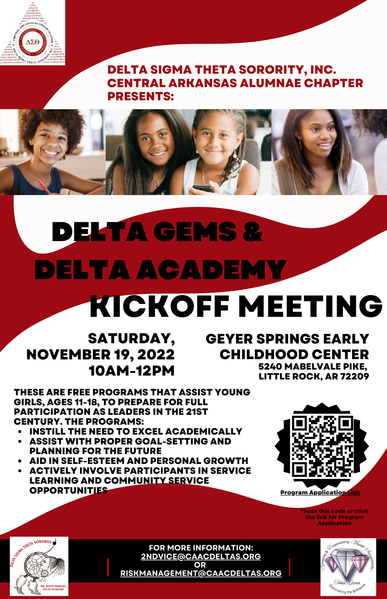 Delta GEMS serves teenage females, ages 14-18. GEMS was created to foster the success of the Dr. Betty Shabazz Delta Academy program by continuing to provide educational and cultural enrichment to young ladies throughout high school. Delta GEMS is designed to provide an opportunity for young ladies to interact with positive role models by developing long-term mentoring relationships and to help them develop skills to counteract many of the negative aspects of our society.